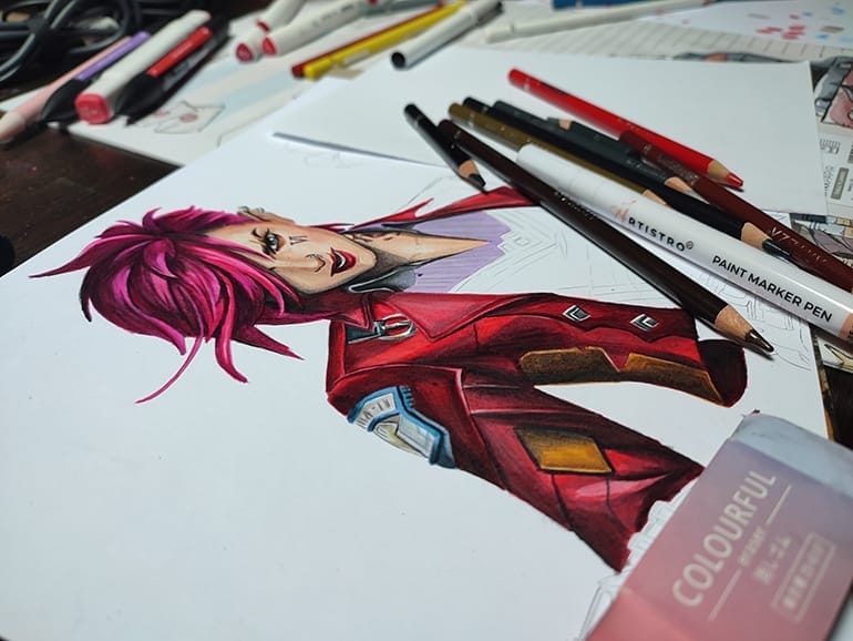 TikTok, Instagram, YouTube, and all the big platforms are constant reminders of the need to create more unique, different, and simply just MORE things. I personally find it exhausting. I am a traditional artist, working with pencils and alcohol markers. One piece can take 20 to 40 hours to finish, sometimes even longer. As someone who loves realistic art, I am all about details, which are things that can’t be rushed.