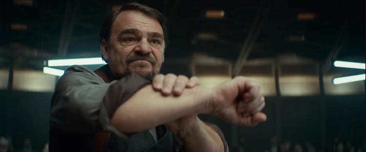 We first meet him at an underground town hall organised by Carro Rylanz (Richard Sammel). He is a normal-looking but burly dude who is one of the most animated speakers at the meeting. Asserting that the Empire is building an armory in Palmo, the capital city, Lezine calls for action before it’s too late. Crucially, he projects a combustible personality that could be deemed a liability to covert operations.
