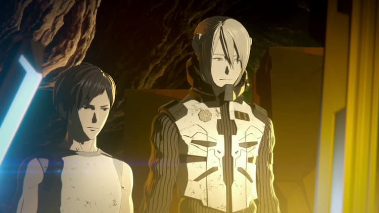 In the trilogy's first film, Planet of the Monsters, we learn that Humanity has been forced to flee the planet due to the appearance of monsters. These monsters include many past Godzilla favourites, such as Rodan and even the much-loathed Zilla from 1998 (a movie with a banger of a soundtrack that you can read more about here). The most dangerous of all is Godzilla, who killed the main character Haruo's (Christopher Niosi) parents, right in front of him. This causes Haruo to hate Godzilla and spend the next 20 years planning revenge. With the help of some alien species, some humans can escape into space and begin searching for a new world. This doesn’t go to plan, and the Aratrum spaceship returns to Earth with a plan to kill Godzilla. But nearly 20,000 years have passed on Earth, and a lot has changed. What follows in the rest of this film and the sequels of City on the Edge of Battle and The Planet Eater is this determined group of people utilising every strategy they can think of to take down the now gigantic Godzilla Earth.