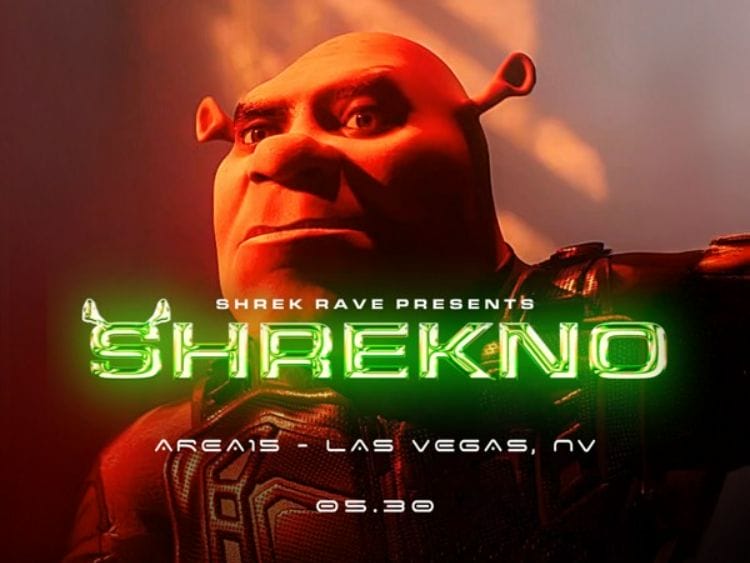 The recent Shrek Rave stop at Las Vegas's legendary Area 15 immersive multimedia multiplex was a specialty Shrek Rave stop called "Shrekno." Certain Shrek Raves have slight variations- some are called "Shrek Rave XXL" to indicate a larger venue. "Shrekno" is described as an immersive 360° projection experience, powered by Shrek Rave. Same killer Shrek Rave DJs, updated with a unique visual experience.