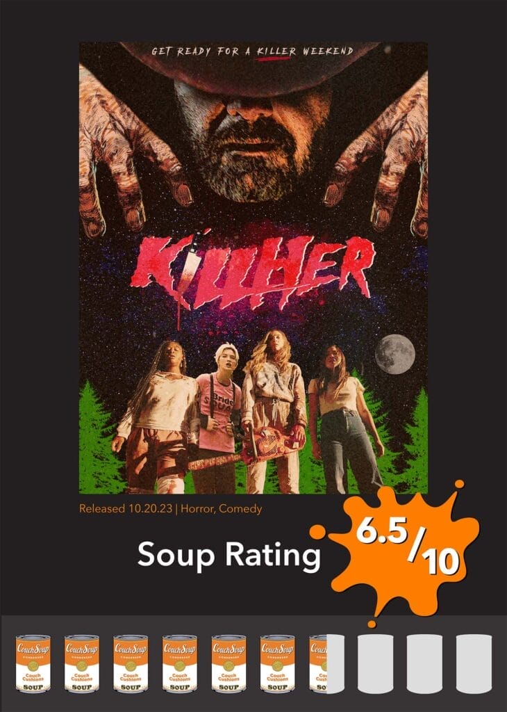 KillHer is a surprisingly fun comedy-horror that leans into horror tropes such as the setting, masked killers, suspicious mountain men, and a cast of vulnerable young women to prey on. It knows what it is and embraces it, wanting to bring joy rather than existential crises to the audience.