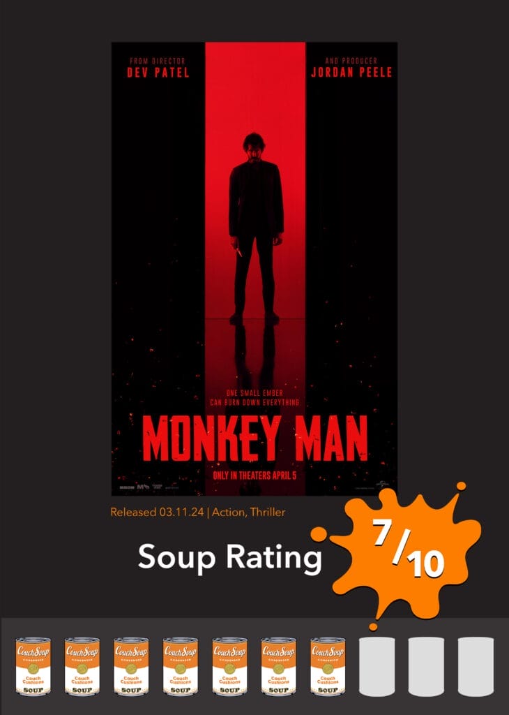 Monkey Man, the ambitious directorial debut from Dev Patel, is an enjoyable movie to lose yourself in. Sit back, relax, and enjoy the rich visuals and the danse macabre. However, it’s also a tin of sardines: too many strong topics packed into a small package. As a result, the narrative gets muddy, and the details do not add up to what was delivered.