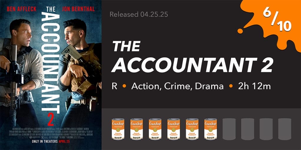The Accountant 2 is a serviceable action film. The relationship between the brothers is great, with Affleck and Bernthal giving strong performances, but the rest of the film just doesn’t reach that level. It doesn’t do anything bad, as it is well put together with action set pieces that are good, just nothing special. Hopefully, with a third film already announced to be happening, they can go back to what made the first such a uniquely enjoyable experience.