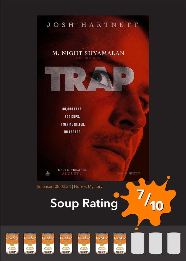 Trap is engaging and tension-filled. Its cast does a tremendous job of making me care about these characters, especially Cooper and Lady Raven. I hope to see both Josh Harnett and Saleka Shyamalan in many more projects to come.