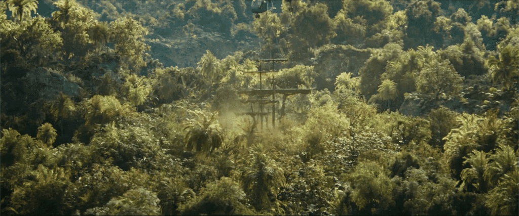 Another shot we saw in the teaser trailer and it looks like it's pulled straight out of the Uncharted 4 game. What we know now is that above this cave is a jungle so these ships aren't getting the Goonie's exit. It's a bit more dramatic. Also with a hole in the cave ceiling that big I wonder why no one found these ships already?