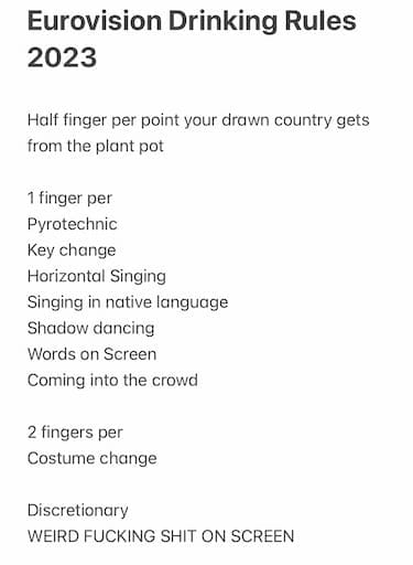 The best part of Eurovision, for me, is gathering with a bunch of my friends and watching the madness unfold. Part of that madness is the Eurovision Drinking Game.