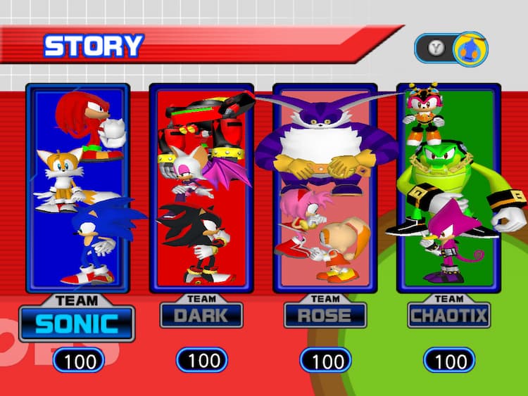 Sonic Heroes is the sequel to the beloved Sonic Adventure 2. The game’s story takes place an unknown time after Dr Eggman destroyed half of the moon and Shadow fell to Earth. Now, Dr Eggman is back up to his old tricks and sends a letter to Sonic, Tails, and Knuckles, telling them they only have three days to stop him. After our trio accepts the challenge, they all run off to stop the Doctor once again (and let the tornado crash into a rock; don’t worry about it). It’s a basic premise for a Sonic game, but this is where Sonic Heroes stands apart from so many others; there are four perspectives on this story, which means four teams.