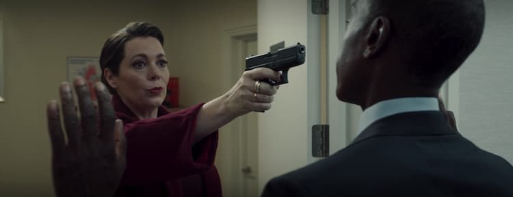 Sonya Falsworth (Olivia Colman) calls Rhodey. It’s distraction o’clock. She tells him that Fury is in the building, and he’ll do anything to stop the missile strike on New Skrullos! Rhodey is incredulous, but he can’t keep his Skrull cover if he doesn’t order Ritson’s evacuation.