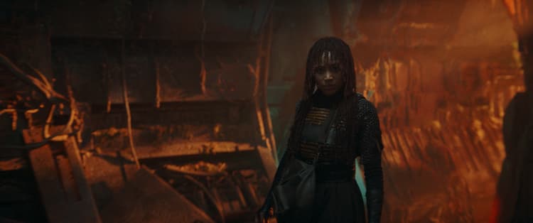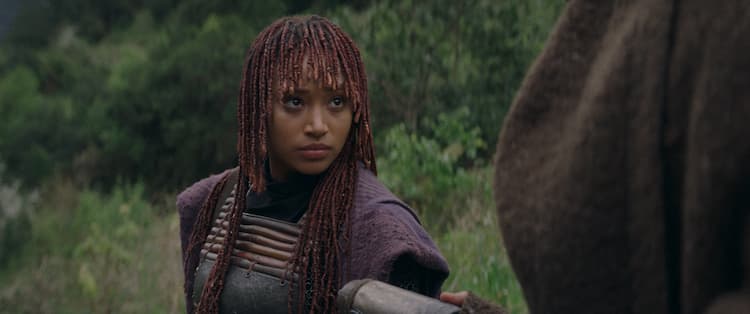 After the flashback-filled Episode 3, Episode 4 takes us back to the present day. Sol has informed the Jedi about Mae’s (Amandla Stenberg) Jedi killing spree and clears Osha (Amandla Stenberg) of all crimes. But before Osha can skedaddle back to her life, Sol (Lee Jung-jae) asks for her help capturing Mae. It turns out that the Jedi are keeping this ordeal under wraps and want to get rid of the problem discreetly. Good guy Sol doesn’t want that, so he’s going after Mae with some backup. This includes Osha, Yord (Charlie Barnett), Jecki (Dafne Keen), a few nameless Jedi, and a Tynnan tracker named Bazil. Together, they head to Khofar to track down the Jedi Kelnacca and capture Mae. But, before our heroes make it to Khofar, Mae and her associate Qimir (Manny Jacinto) arrive on the forest planet and are already tracking the Wookie Jedi, and they’re quickly closing in.