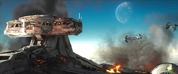 Axe Woves clears the electromagnetic field as the capital ship descends in a blazing ball of fire and warns, “I’m coming in hot. Clear everyone out. I’m going to take out the base.” The Imperials wanted their ship back, and Axe is going to deliver!