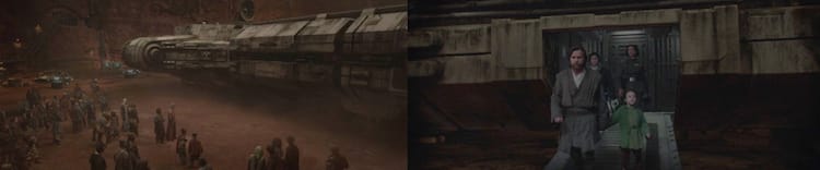 The hangar bay doors close over the ship as the survivors look on. “What’s happening?” Obi-Wan worriedly asks. “The controls aren’t responding,” explains Sully. “An Imperial Destroyer just arrived in orbit above us,” Roken adds. “She must have tracked us,” Tala reasons. “It’s not her. It’s Vader,” Obi-Wan confirms dreadfully, “He’ll attack next. He hasn’t the patience for a siege.” Obi-Wan knows his old apprentice well.