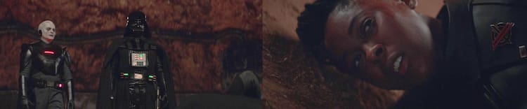 “Did you really believe I did not see it, youngling? You are of no further use,” Vader says as Reva lies on the ground in defeat. “Hello, Third Sister. Revenge does wonders for the will to live, don’t you think?” Reva’s predecessor approaches. His survival was expected since he is a recurring character in the animated series Rebels. “Your rage was useful. Now it is tiresome,” he says as he reclaims the Grand Inquisitor insignia. He takes his place next to Lord Vader, “Goodbye... Grand Inquisitor.” They turn and leave together.