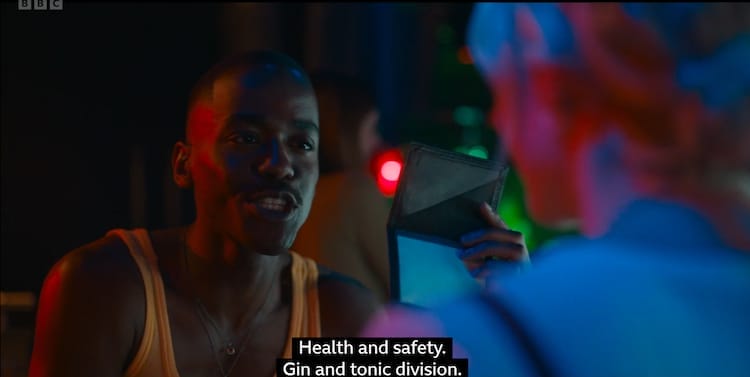 Let's talk about Ncuti Gatwa's first starring performance. Gatwa is captivating, first being seen at a nightclub dancing, wearing a jumbled outfit of a kilt with a tank top, and oh boy. Pour out a brew for Matt Smith's goofy dancing because this Doctor has some real moves. You can pretty much feel the show manifesting Squidward going, "Oh no, he's hot" in the corner. The camera just loves the guy.