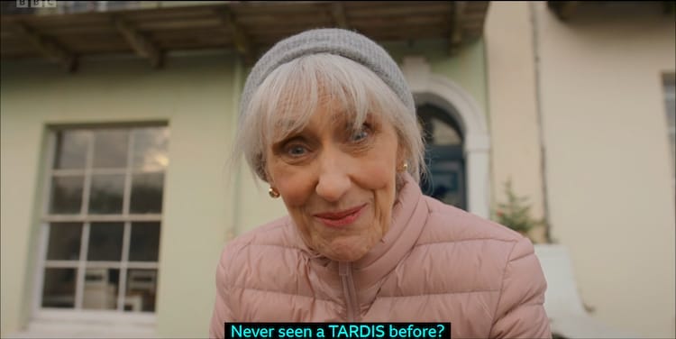Now, here's the deal: I will tell you exactly who this woman is and how she knows what a Tardis is. The show calls her Mrs Flood, but I prefer to call her Anita Dobson from Eastenders, a British Soap opera with more episodes than One Piece. And it's probably something that only the most devout Whovians would know: Doctor Who once had a major crossover event with their show. It was the most cringe and British thing to happen in the 1980s, and it was all for charity, making it somewhat understandable how it existed in the first place.