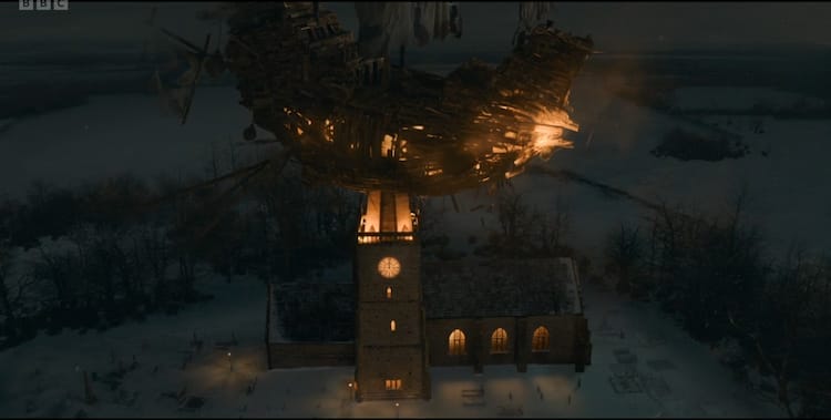 I hoped the Doctor would one day return to grace our screens at Yuletide. And finally, it did, except I forgot. Christmas is a thing to be feared, and all Christmas traditions are actually here to kill us. At this time of year, Russel T Davies: Evil Showrunner, used to come down from on high, manically laughing "Ho ho ho" as he unleashed killer Christmas trees, evil nutcrackers, The Star of Bethlehem firing death lasers, and that time the entire world became clones of John Simm. This is Christmas to him, a time of destruction, invasion, and blood, and this episode is no different.