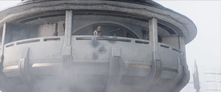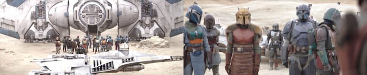 When Bo-Katan and the Armorer join the others, Bo-Katan does not wear her helmet. The Tribe’s body language is collectively wondering why and some of them seem betrayed. The Armorer explains, “Bo-Katan walks both worlds. And she can bring all tribes together. It is time to retake Mandalore.”