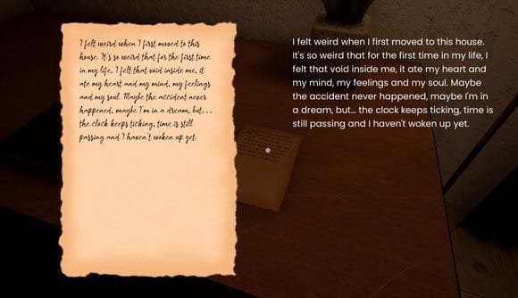 Around the apartment are a couple of notes to read that describe the struggles our main character is facing while dealing with the loss of his daughter. As the game goes on, the notes get even more desperate, and you can see your character's slow descent into despair. Those are interesting to look through, and I felt you got a good sense that things were getting direr. I like little details like that.