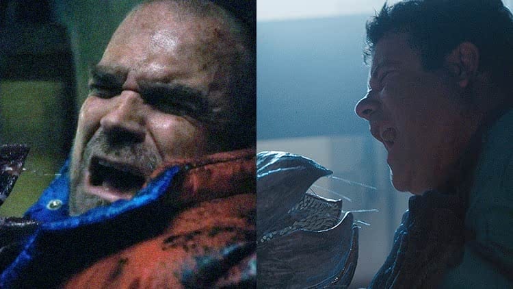 It was bad enough when we had to watch the lovable Bob (Sean Astin) die a horrible and gruesome death. But now we have to watch Hopper go through the same thing?! And by his reaction, I’m pretty sure he’s in a lot of pain… Also, where is Joyce?! Please tell me she is okay and is just helping Murray burn Demogorgons to a crisp.