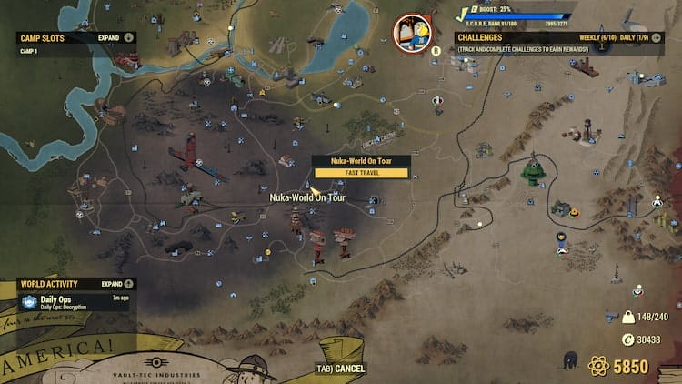 There are a number of places around the map that allow players to fast-travel for free. The first free fast-travel point is unlocked by default… because you’ll always be able to travel back to Vault 76 for free! There’s a veritable list of locations across the map that provide free fast-travel, though, including the Rusty Pick, the Whitesprings Resort, Fort Atlas, Foundation, and the Crater. The previous season also introduced Nuka-World On Tour to the Ash Heap, which also doubles as a free fast-travel location.