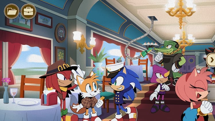 The Murder of Sonic the Hedgehog is a free visual novel created by the Sonic Social team, signed off on by Kazuyuki Hoshino of Sonic team, and published by SEGA. The premise is that Amy Rose's birthday party is taking place on a murder mystery train. You play as a timid food vendor and are told to ensure everyone is well "taken care of."