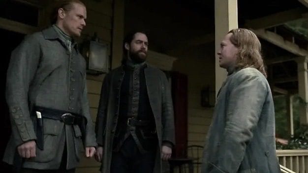 Speaking of Roger and Brianna, while Roger isn't the official minister, he's been acting in the capacity for a while. He visits Jamie and Claire to help, and it turns out he stops by at just the right time! The young man Roger caught Malva with in the church in episode 5 arrives at the house, spouting more questions. At this point, the Frasers are fed up with the Ridge community acting brand new, so Roger is like “What are you playing at? I know you saw me see you.” The young man gets upset, accusations and threats start flying, and the tension ratchets ever upward. Plus, we're still no closer to solving the murder! Longest whodunnit episode ever.