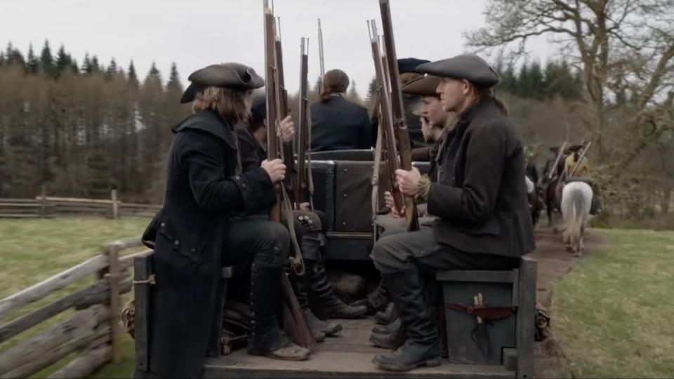 At the end of the episode, there's still no solution to Malva's murder. But that doesn't mean Outlander's done wrecking us! The Browns ride up with their "Committee of Safety" (sense my sarcasm) and announce they've come for Claire. To arrest her. For Malva's murder. Because of course they are. And, because this show loves causing us pain, we're left on that cliffhanger until next week. I almost threw my iPad across the room before I realized I can't break it because I have to watch the finale. That's right, the finale is next week! Clear your schedules, 'cause shit's about to go down.