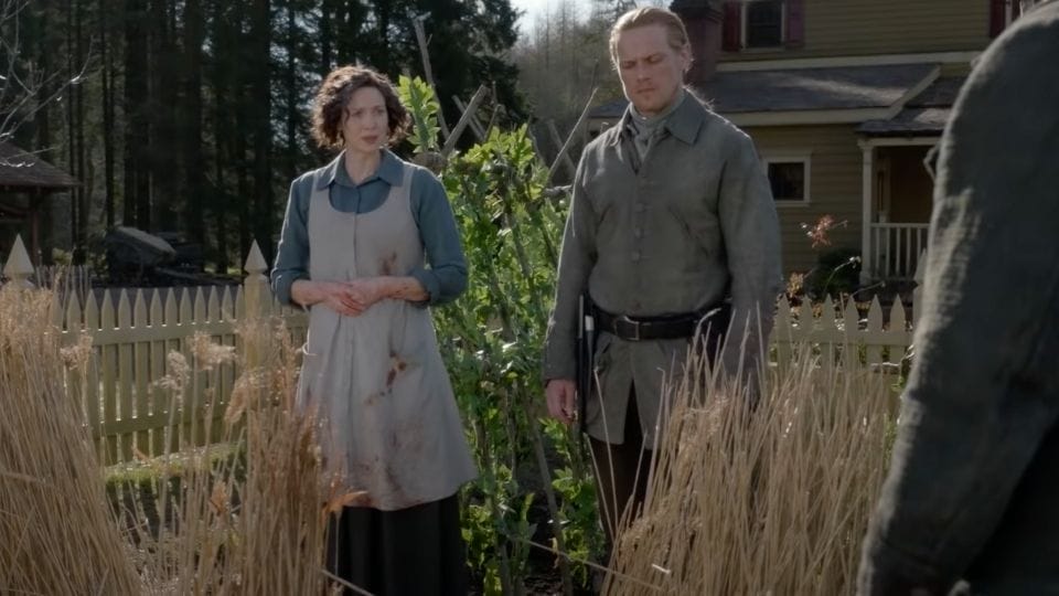 But there's no rest for the weary. The entire community is suspicious that Claire and Jamie killed Malva because Malva lied about her intimacy with Jamie. One resident even brings Christie's Bible to Jamie for Roger to read from during the service. It isn't a kindhearted visit; he uses the opportunity to accuse the Frasers of the crime. The audacity! Jamie, in no uncertain terms, makes it clear he won't be listening to any unfounded rumors.