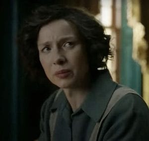 My heart is just in pieces for Claire. Every time she tries to tend to Malva, Lionel Brown taunts her. I see now that I've been using the wrong term for these experiences. They aren't flashbacks at all. Rather, the memory of Lionel is haunting Claire's subconscious and giving voice to her worst fears about herself. She soldiers on and continues to prepare Malva's corpse even as Lionel digs up the many traumatic experiences from her past. He accuses her of being the reason for all of her family's pain. He says she abandoned Frank for Jamie and, in doing so, brought Brianna and Roger into the past. Claire is fearful that everything bad that's happened since then has been directly tied to her actions.